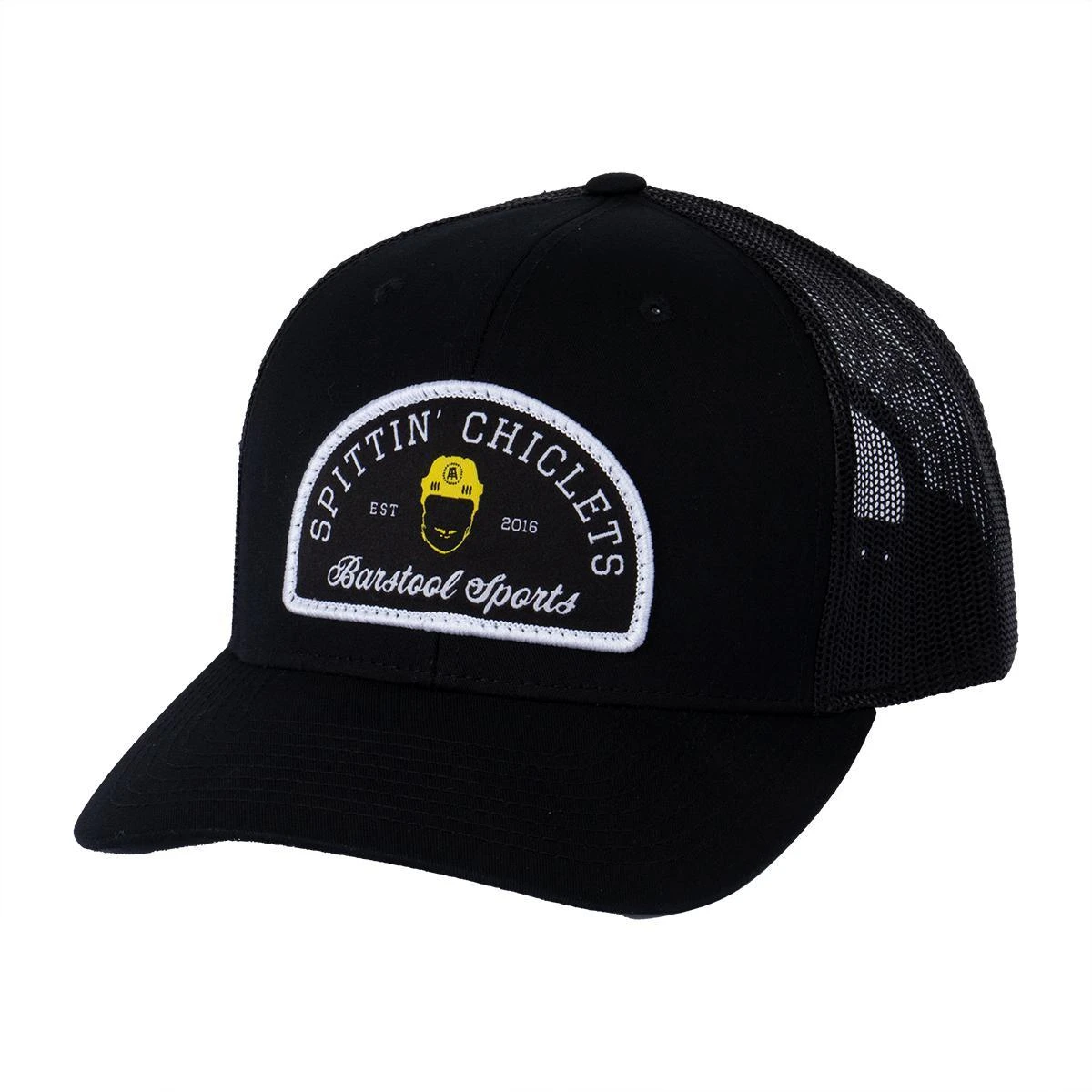 Spittin’ Chiclets Patch Trucker Hat from former NHL vets Ryan Whitney, Paul Bissonnette and Barstool Sports’ Rear Admiral from the Spittin’ Chiclets Podcast.